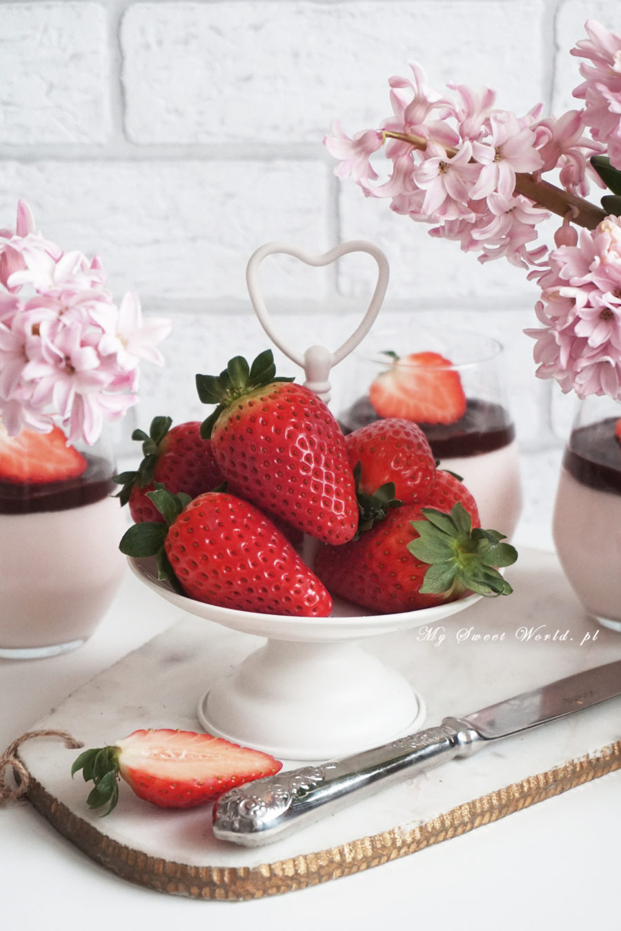 Jeśli lubicie ciasto „Ptasie mleczko” to deserki z dzisiejszego przepisu również Wam zasmakują <3. Mają konsystencję pianki i całkiem sporą warstwę polewy czekoladowej. Z przepisu można uzyskać 5 dużych deserów lub 8 małych, polecam tę dugą opcję :). Możecie użyć dowolnego smaku galaretki, ja tym razem użyłam truskawkowej, ale chyba lepszy smak ma malinowa lub cytrynowa. Jeśli macie ochotę na coś słodkiego po niedzielnym obiedzie , a niekoniecznie chcecie piec ciasto to myślę, że ten przepis może Wam się spodobać.